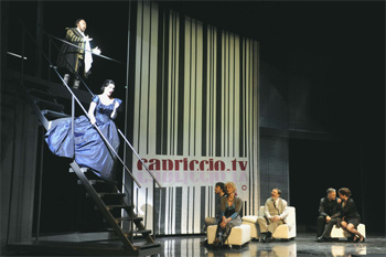Capriccio ist ein hervorragendes, aber durchaus schwieriges Werk. Eine gute Vorbereitung auf diese Oper ist vorteilhaft, denn diese Oper quillt über an Zitaten, Anspielungen, Stilkopien und Persiflagen aus der Musiktheatergeschichte. Eingebunden in eine zwischenmenschliche Handlung spielt die uralte Frage, ob denn nun der Ton oder das Wort innerhalb der Musik wichtiger ist und welche Rolle die Regie spielt den Kern des Werkes. Lag es an den Aktionen der Sängerschar, die letztlich der Regisseur zu verantworten hat oder überhaupt am Stoff, daß einem die Zeit lang wurde. Ich beobachtete, wie eine Anzahl Zuschauer auf die Uhr schauten, so, als würde ihnen die Zeit zu lang.
